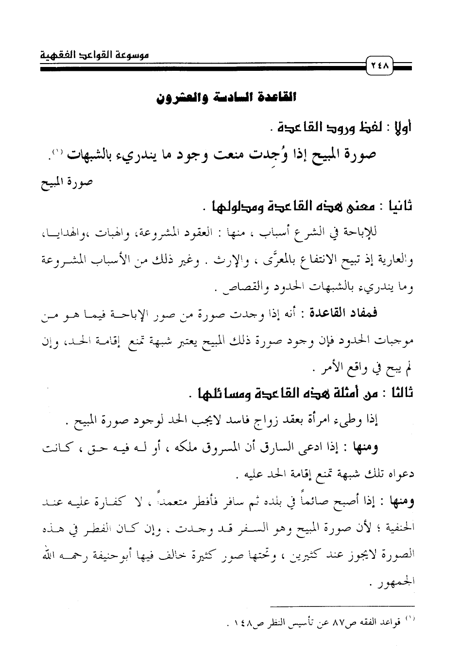 (¬1) قواعد الفقه ص 87 عن تأسيس النظر ص 148.