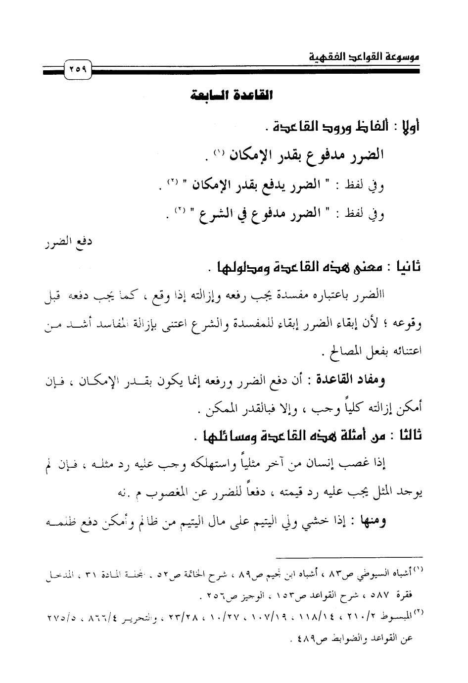 (¬2) المبسوط 2/ 210، 14/ 118، 19/ 107، 27/ 10، 28/ 23، والتحرير 4/ 866، 5/ 275عن القواعد والضوابط ص 489.