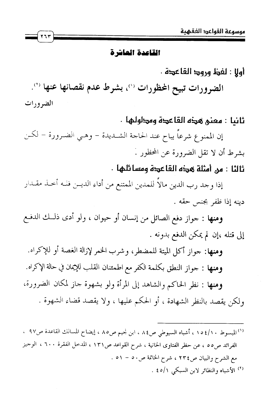 (¬1) المبسوط 10/ 154، أشباه السيوطي ص 84، ابن نجيم ص 85، إيضاح المسالك القاعدة ص 97, الفرائد ص 55، عن حظر الفتاوى الخانية، شرح القواعد ص 131، المدخل الفقرة 600، الوجيز مع الشرح والبيان ص 234، شرح الخاتمة ص 50 - 51.