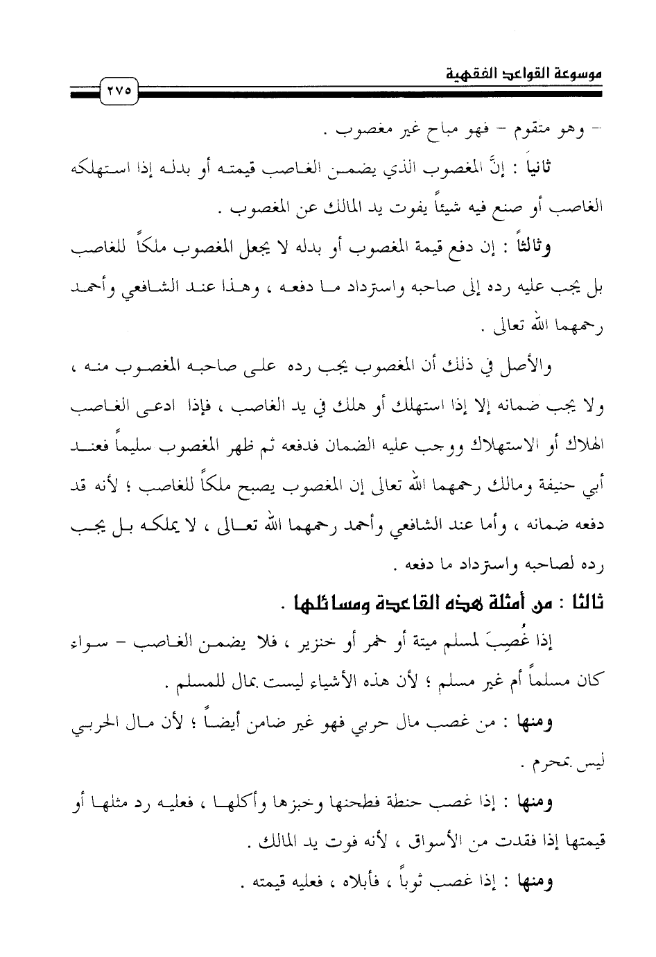 ثالثاً: من أمثلة هذه القاعدة ومسائلها.