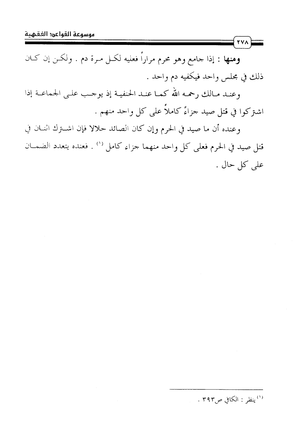 وعنده أن ما صيد في الحرم وإن كان الصائد حلالاً فإن المشترك اثنان في قتل صيد في الحرم فعلى كل واحد منهما جزاء كامل (¬1). فعنده يتعدد الضمان على كل حال.
