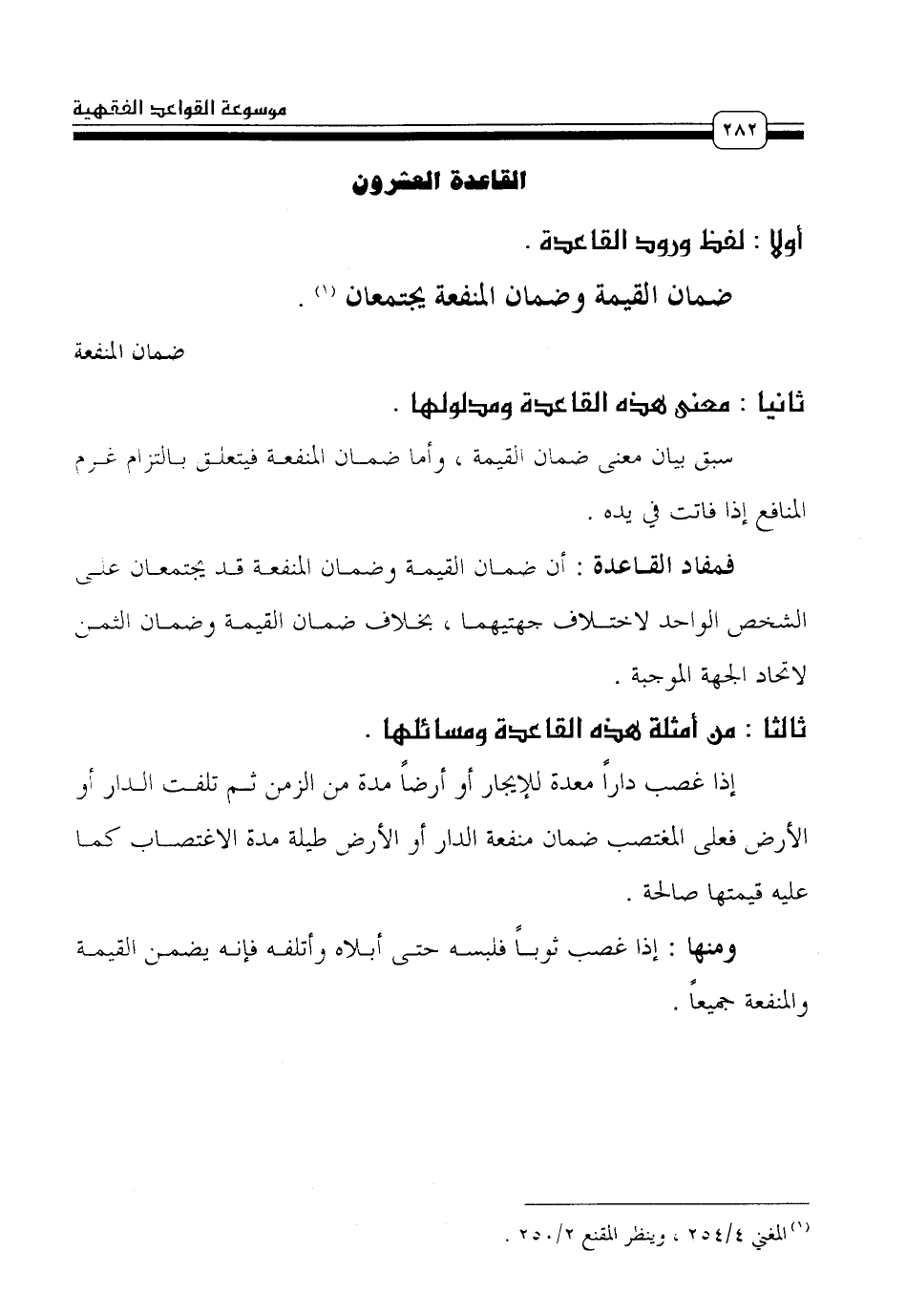 فمفاد القاعدة: أن ضمان القيمة وضمان المنفعة قد يجتمعان على الشخص الواحد لاختلاف جهتيهما، بخلاف ضمان القيمة وضمان الثمن لاتحاد الجهة الموجبة.