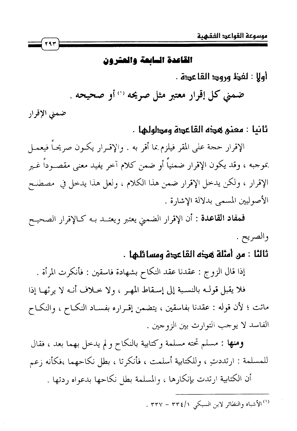 (¬1) الأشباه والنظائر لابن السبكي 1/ 334 - 337.