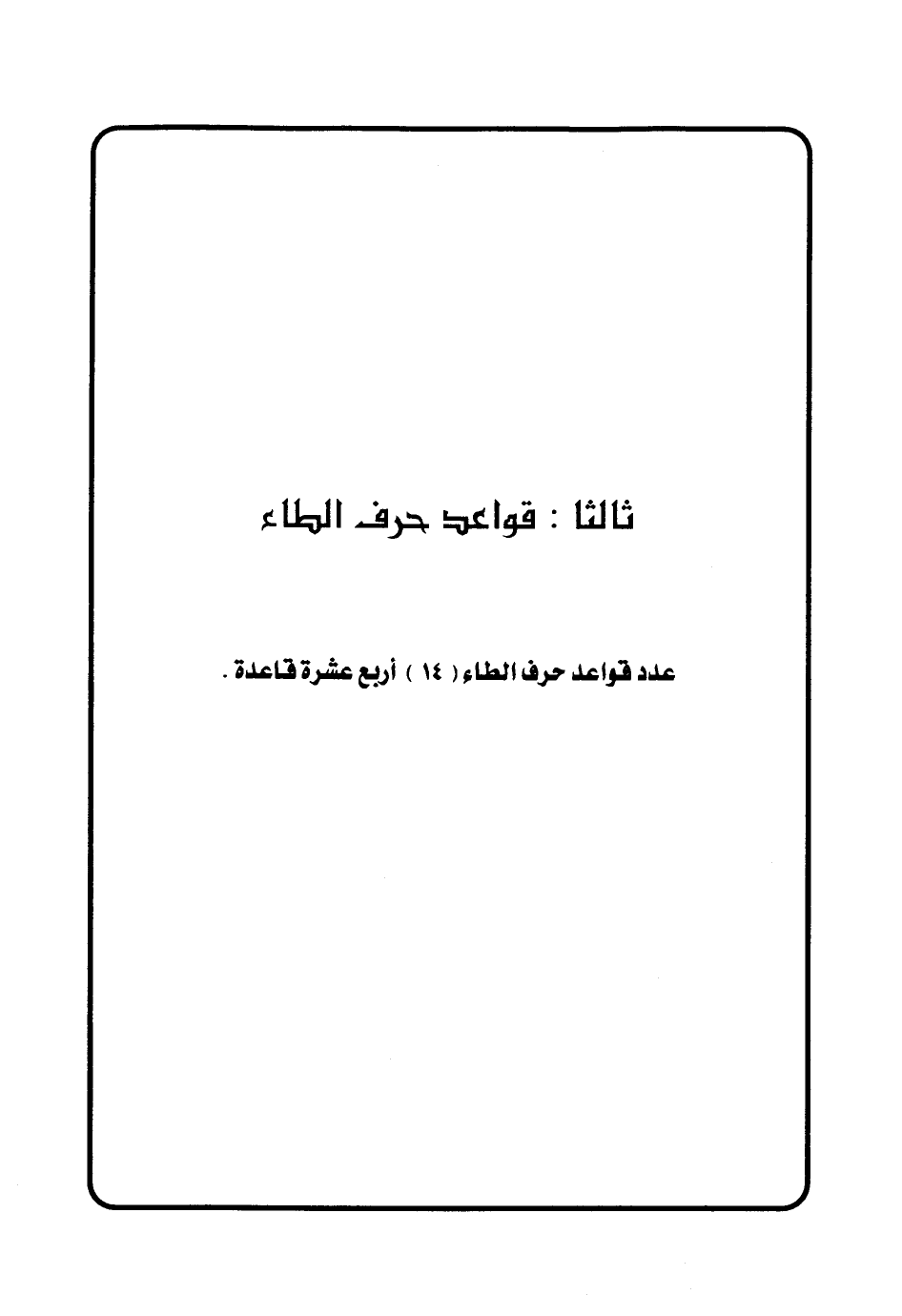 عدد قواعد حرف الطاء (14) أربع عشرة قاعدة.