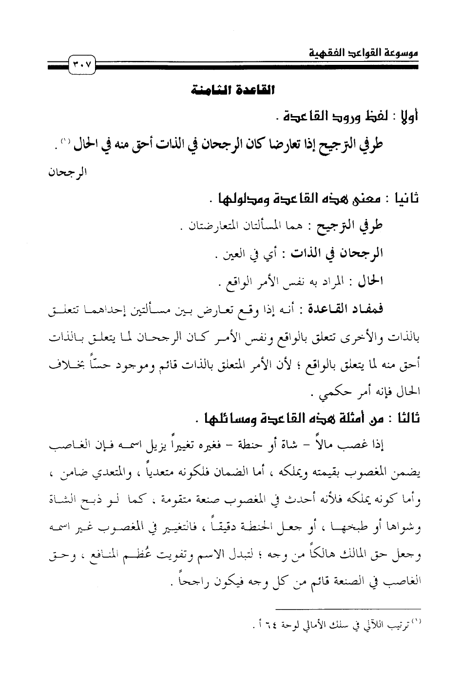 ثالثاً: من أمثلة هذه القاعدة ومسائلها: