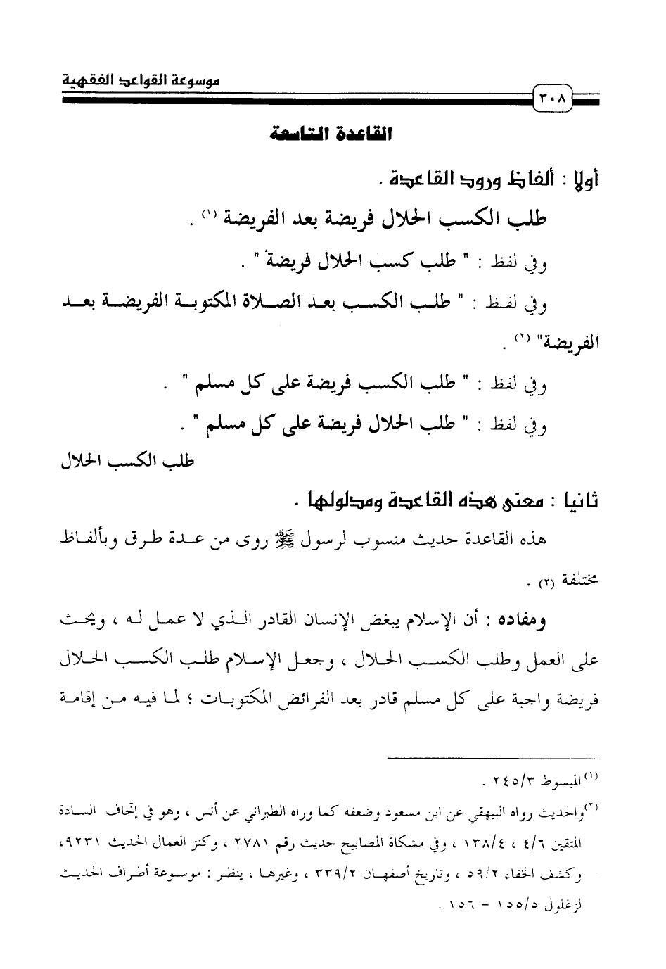 هذه القاعدة حديث منسوب للرسول - صلى الله عليه وسلم - روي في عدة طرق وبألفاظ مختلفة (2).