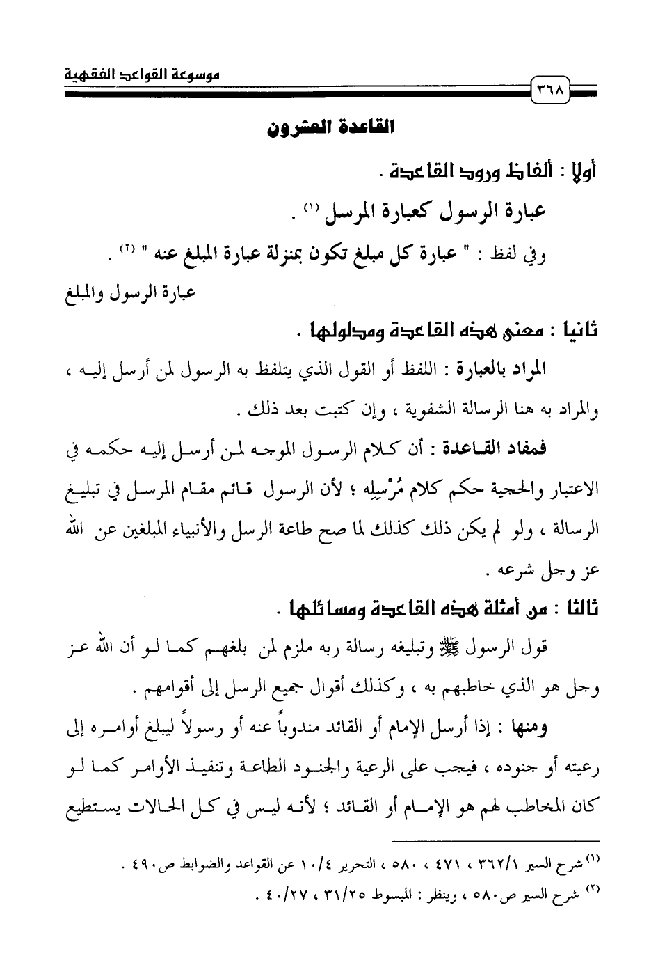 (¬1) شرح السير 1/ 362، 471، 580، التحرير 4/ 10 عن القواعد والضوابط ص 490.