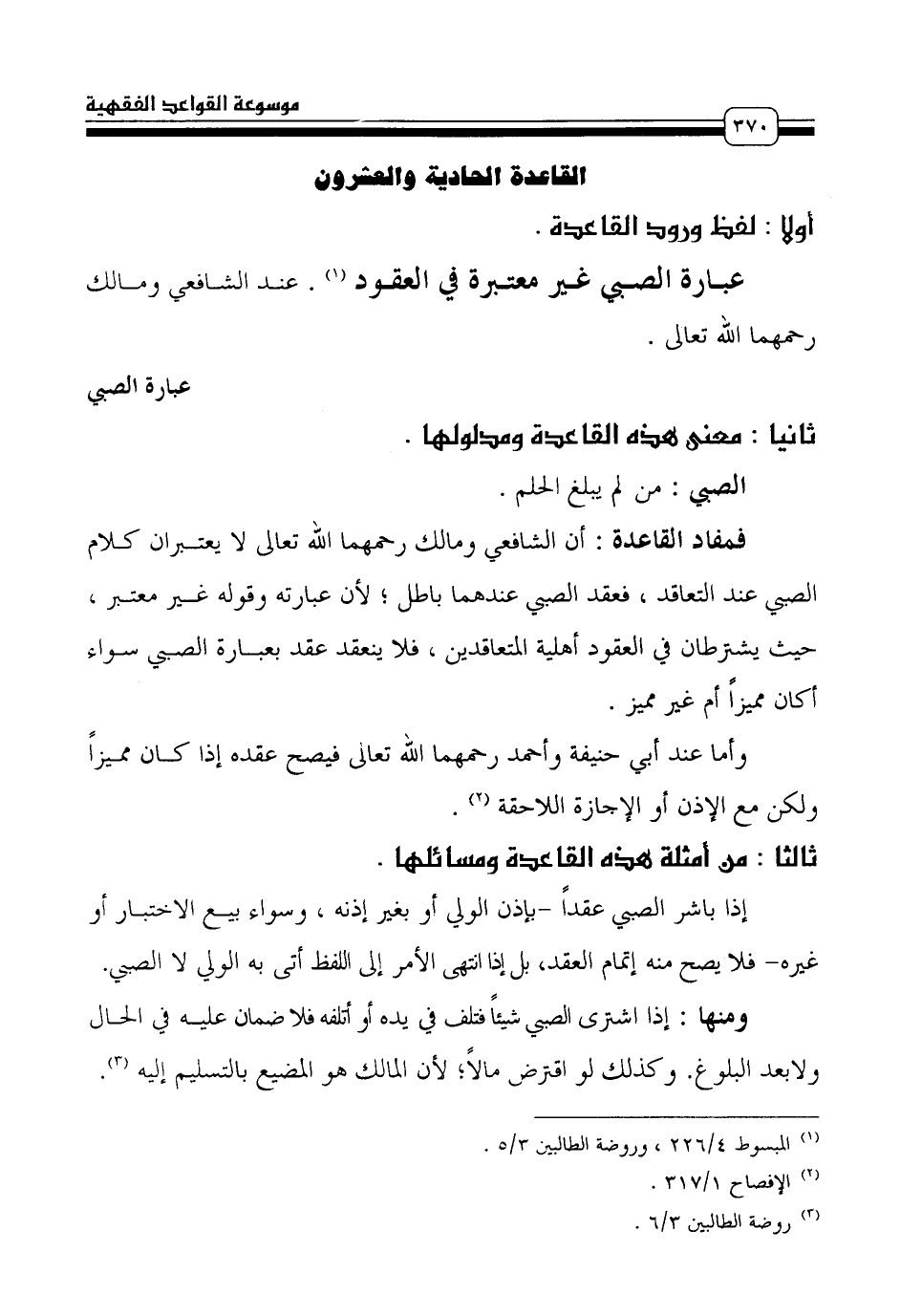 القاعدة الحادية والعشرون [عبارة الصبي]