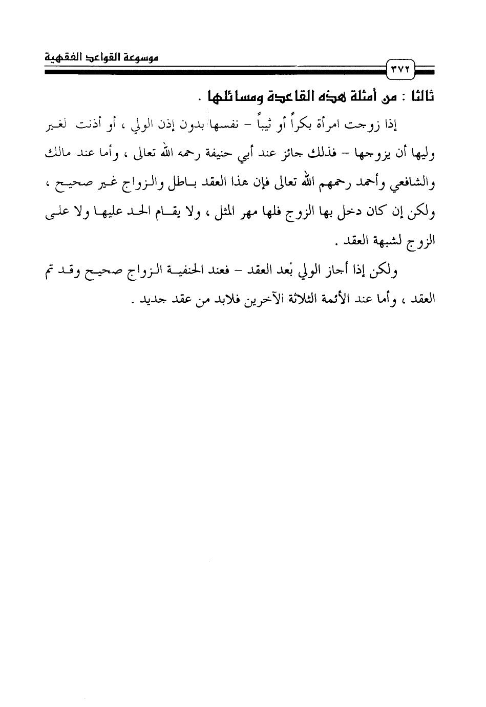 ثالثاً: من أمثلة هذه القاعدة ومسائلها: