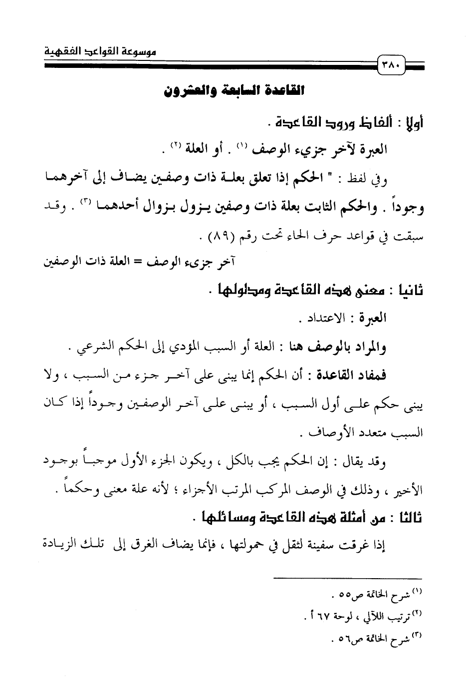 وفي لفظ: "الحكم إذا تعلق بعلة ذات وصفين يضاف إلى آخرهما وجوداً. والحكم الثابت بعلة ذات وصفين يزول بزوال أحدهما (¬3). وقد سبقت في قواعد حرف الحاء تحت رقم (89).