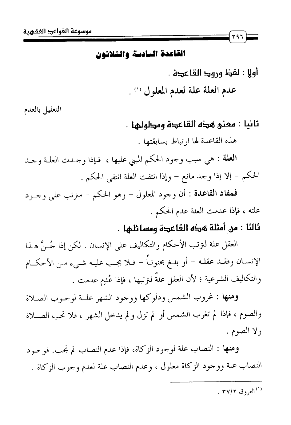 القاعدة السادسة والثلاثون [التعليل بالعدم]