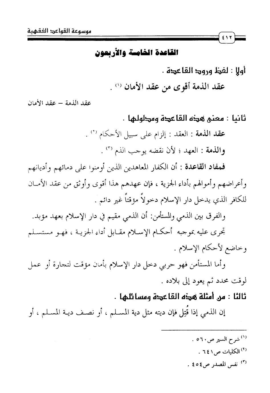 القاعدة الخامسة والأربعون [عقد الذمة - عقد الأمان]