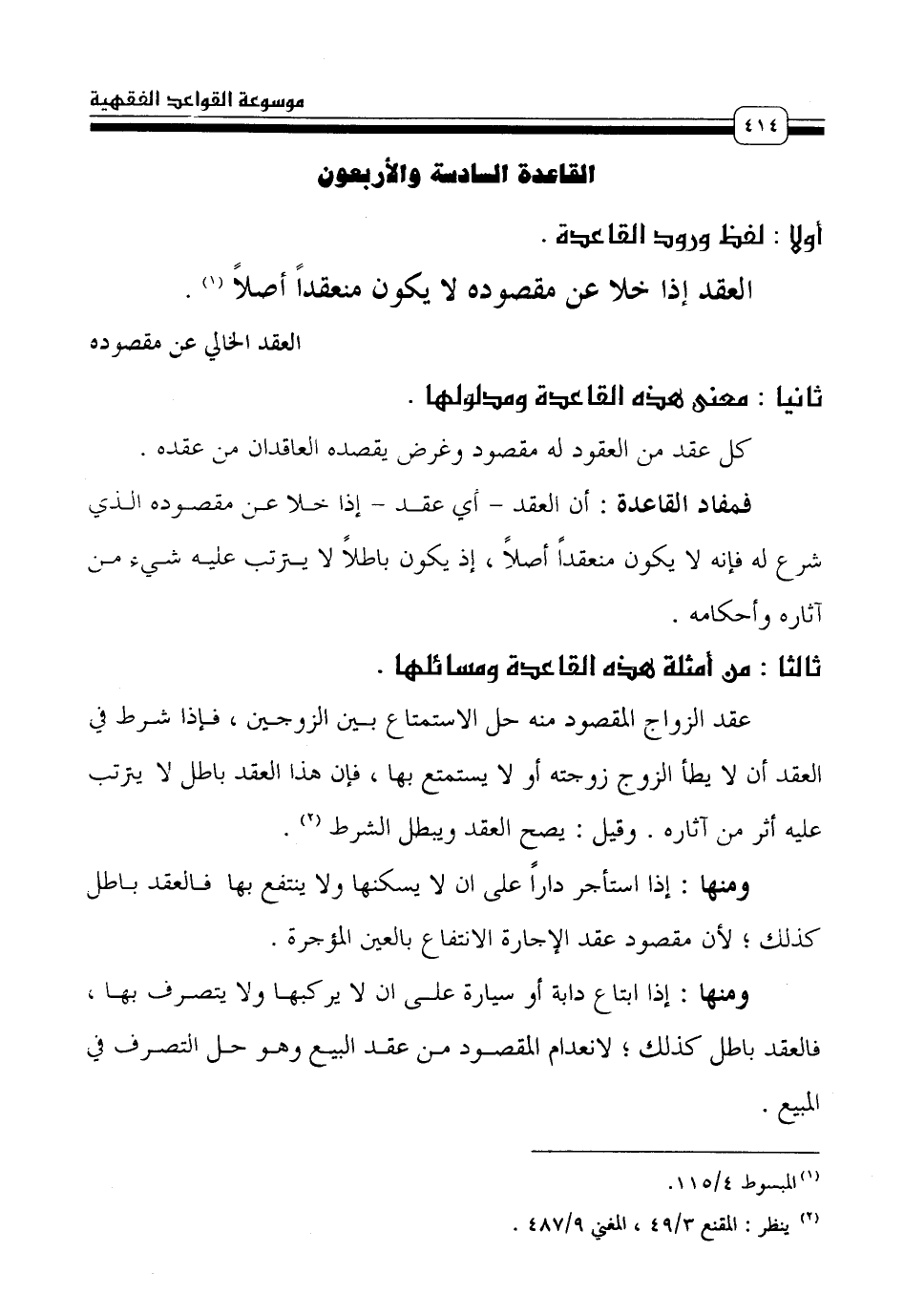 القاعدة السادسة والأربعون [العقد الخالي عن مقصوده]