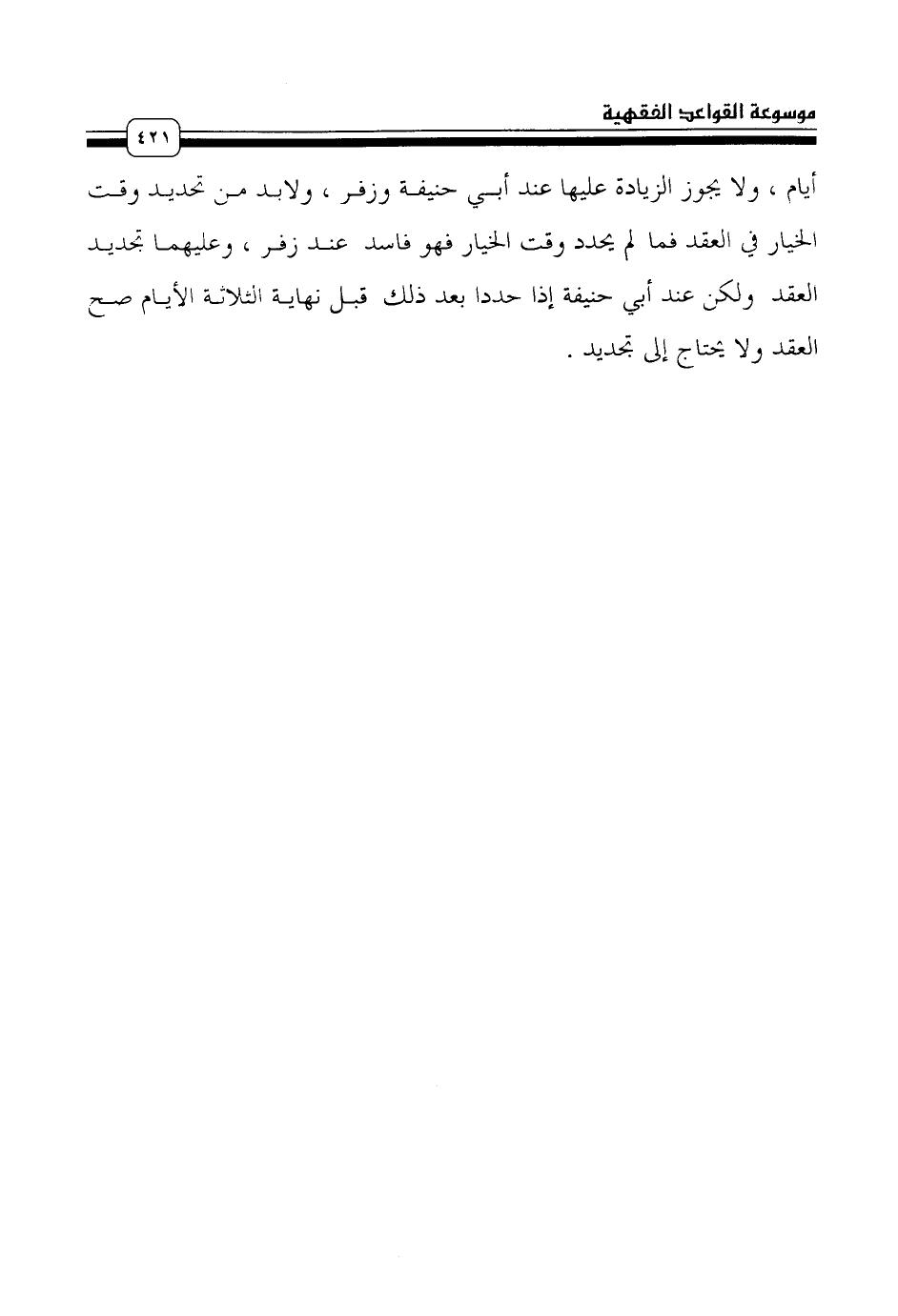 أيام، ولا يجوز الزيادة عليها عند أبي حنيفة وزفر، ولا بد من تحديد وقت الخيار في العقد فما لم يحدد وقت الخيار فهو فاسد عند زفر، وعليهما تجديد العقد ولكن عند أبي حنيفة إذا حددا بعد ذلك قبل نهاية الثلاثة الأيام صح العقد ولا يحتاج إلى تجديد.
