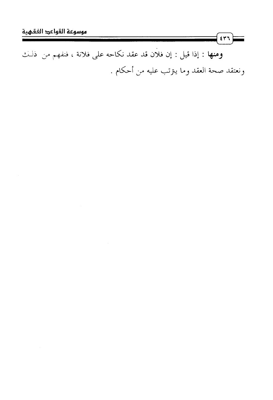 ومنها: إذا قيل: إن فلان قد عقد نكاحه على فلانة، فنفهم من ذلك ونعتقد صحة العقد وما يترتب عليه من أحكام.