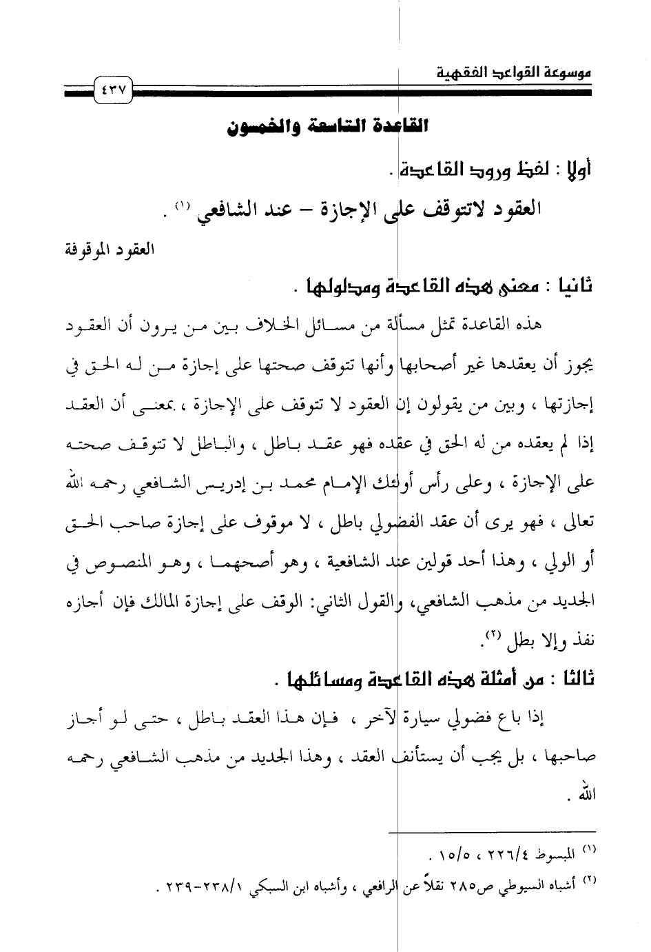 (¬2) أشباه السيوطي ص 285 نقلاً عن الرافعي، وأشباه ابن السبكي 1/ 238 - 239.