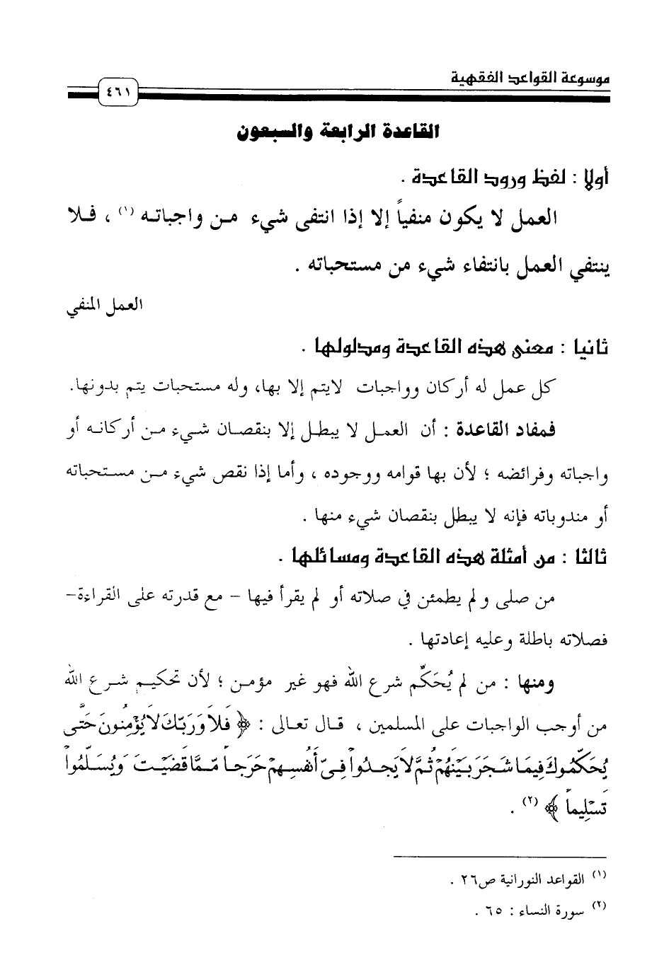 القاعدة الرابعة والسبعون [العمل المنفي]