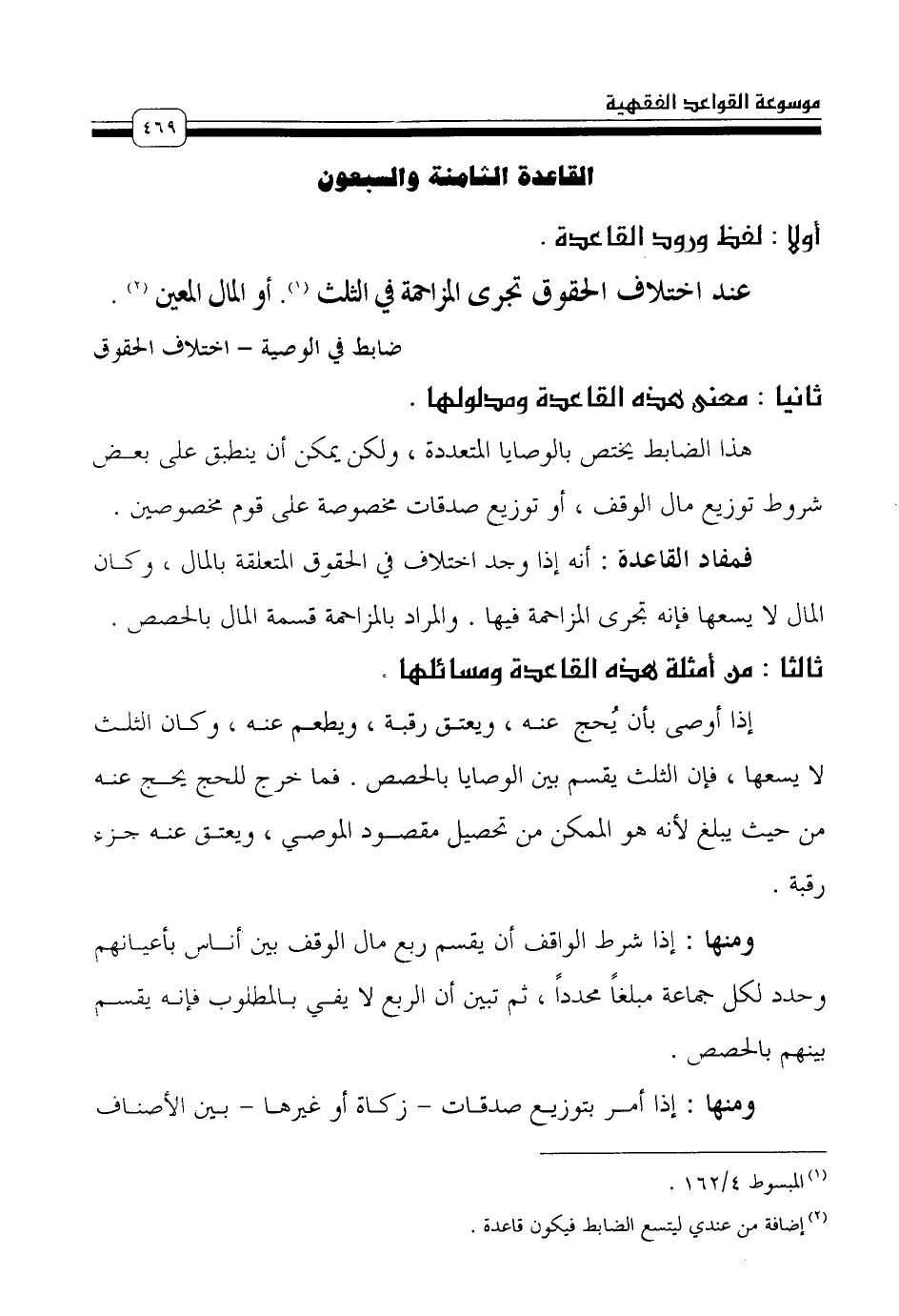 القاعدة الثامنة والسبعون [ضابط في الوصية - اختلاف الحقوق]
