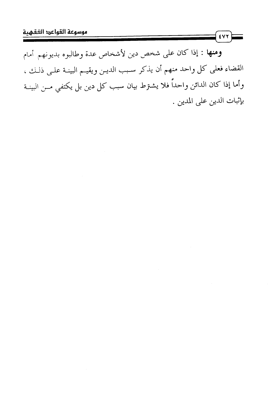 ومنها: إذا كان على شخص دين لأشخاص عدة وطالبوه بديونهم أمام القضاء فعلى كل واحد منهم أن يذكر سبب الدين ويقيم البينة على ذلك, وأما إذا كان الدائن واحداً فلا يشترط بيان سبب كل دين بل يكتفي من البينة بإثبات الدين على المدين.