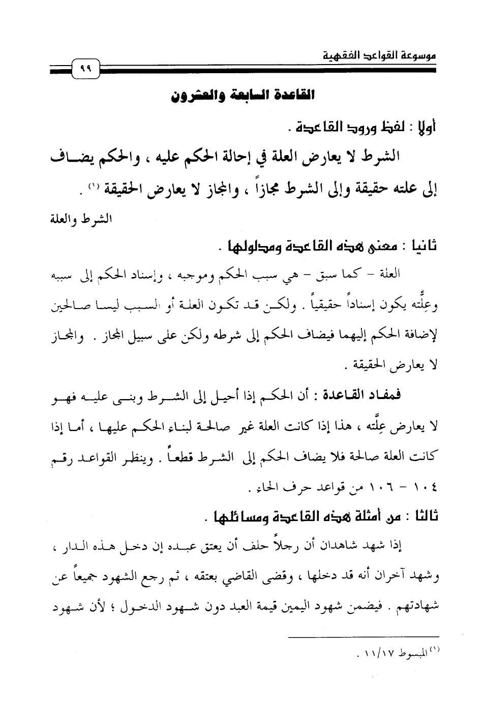 القاعدة السابعة والعشرون [الشرط والعلة]