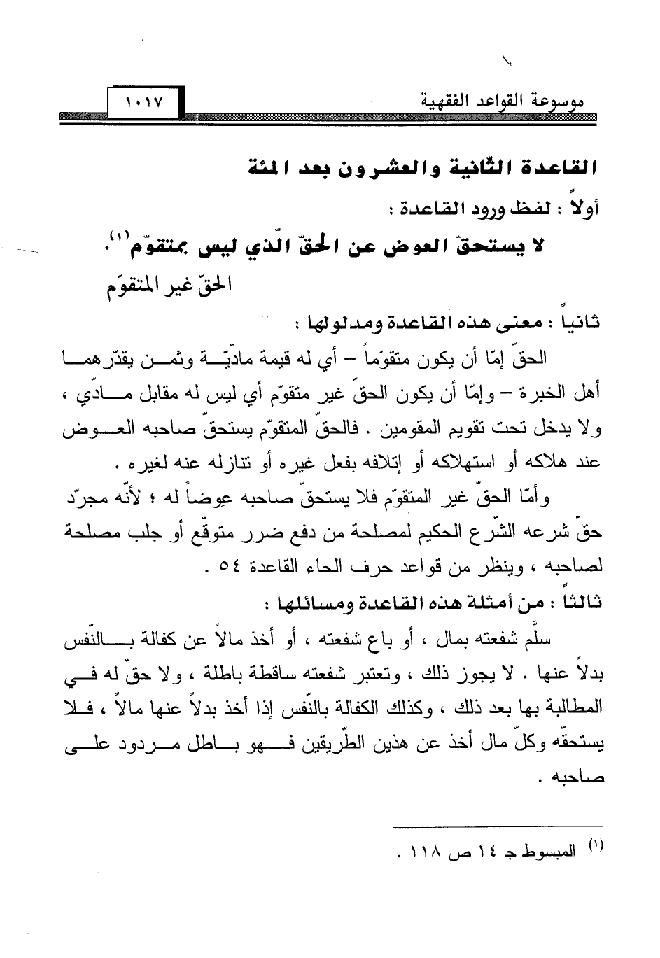 القاعدة الثّانية والعشرون بعد المئة [الحقّ غير المتقوّم]