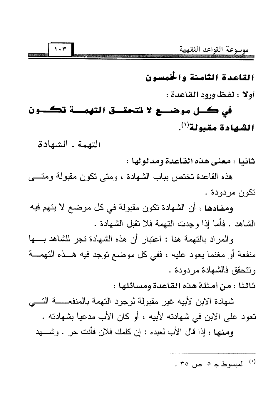 القاعدة الثامنة والخمسون [التهمة - الشهادة]