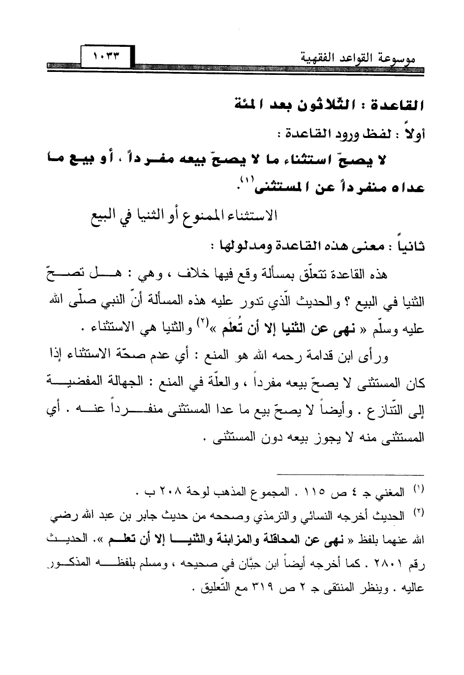 القاعدة: الثّلاثون بعد المئة [الاستثناء الممنوع أو الثنيا في البيع]