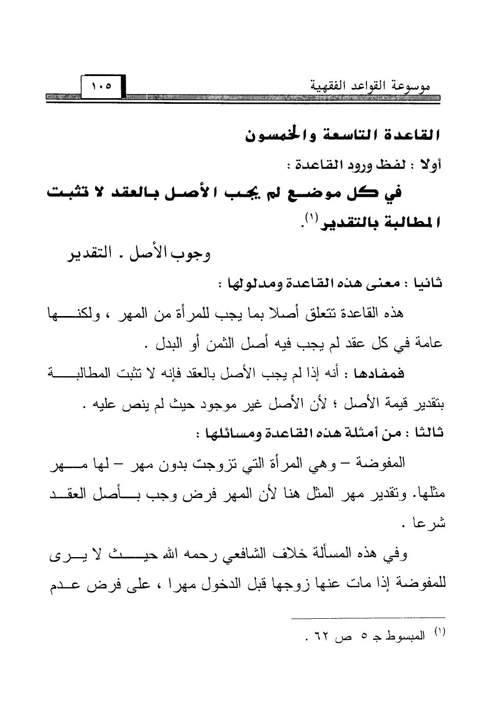 القاعدة التاسعة والخمسون [وجوب الأصل - التقدير]