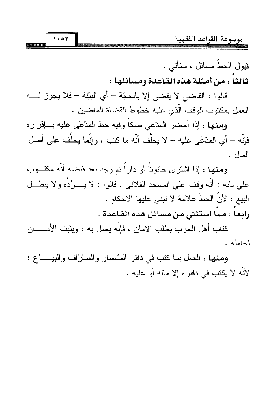 رابعاً: ممّا استثني من مسائل هذه القاعدة: