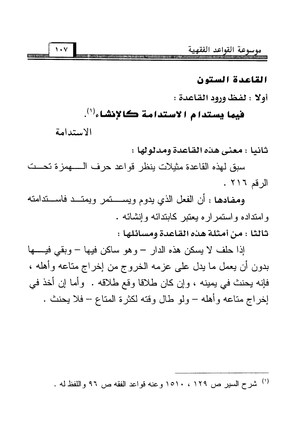(¬1) شرح السير ص 129، 1510 وعنه قواعد الفقه ص 96 واللفظ له.