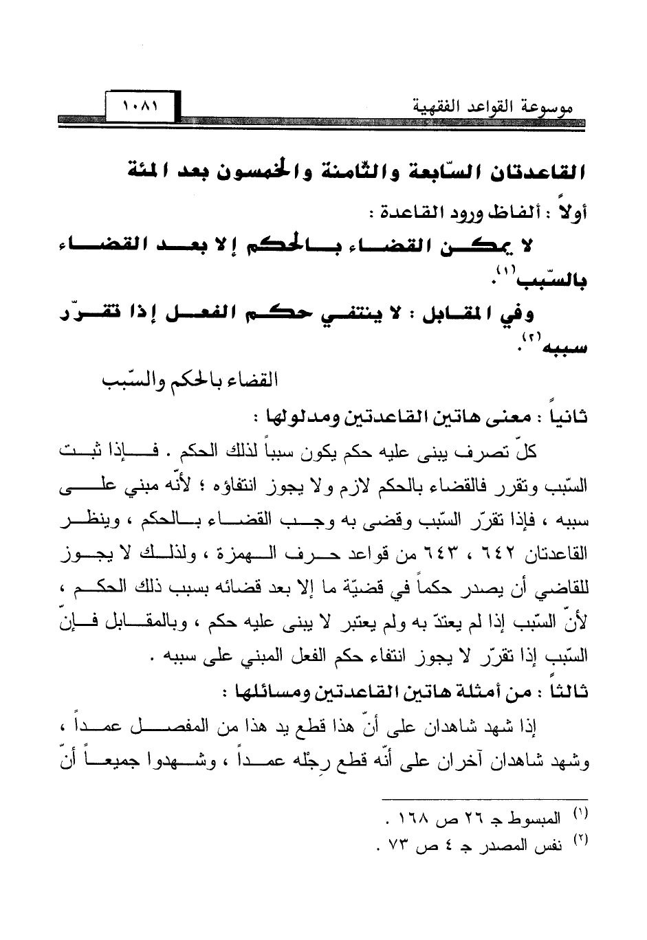 القاعدتان السّابعة والثّامنة والخمسون بعد المئة [القضاء بالحكم والسّبب]