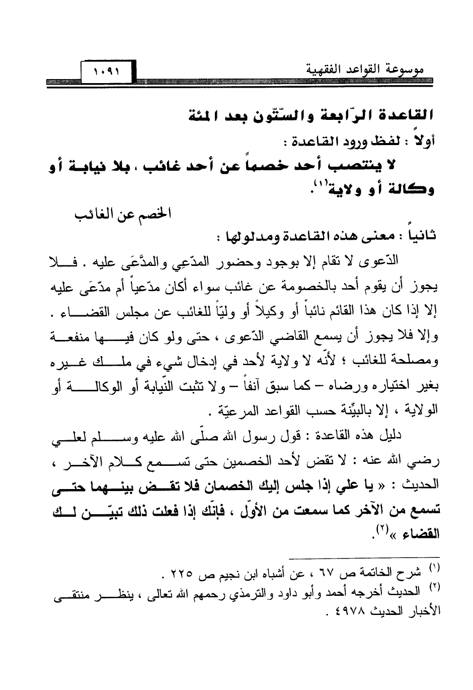 القاعدة الرّابعة والسّتّون بعد المئة [الخصم عن الغائب]