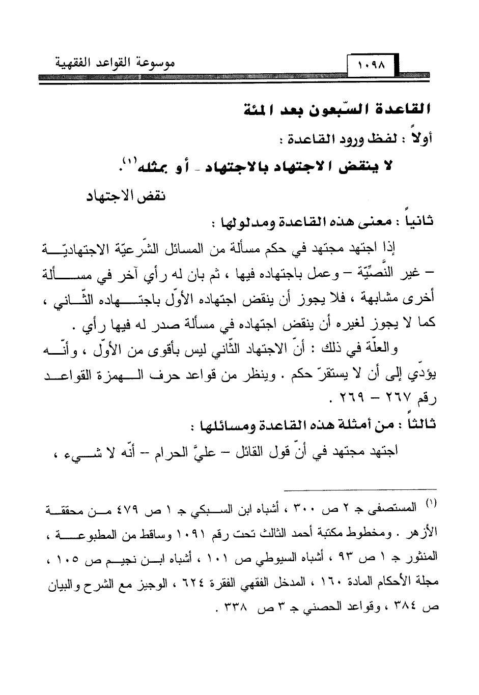 (¬1) المستصفى جـ 2 ص 300، أشباه ابن السبكي جـ 1 ص 479 من محققة الأزهر. ومخطوط مكتبة أحمد الثالث تحت رقم 1091 وساقط من المطبوعة، المنثور جـ 1 ص 93، أشباه السيوطي ص 101، أشباه ابن نجيم ص 105، مجلة الأحكام المادة 160، المدخل الفقهي الفقرة 624، الوجيز مع الشرح والبيان ص 384، وقواعد الحصني جـ 3 ص 338.