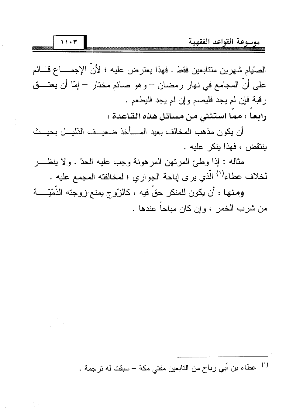 مثاله: إذا وطئ المرتهن المرهونة وجب عليه الحدّ. ولا ينظر لخلاف عطاء (¬1) الّذي يرى إباحة الجواري؛ لمخالفته المجمع عليه.