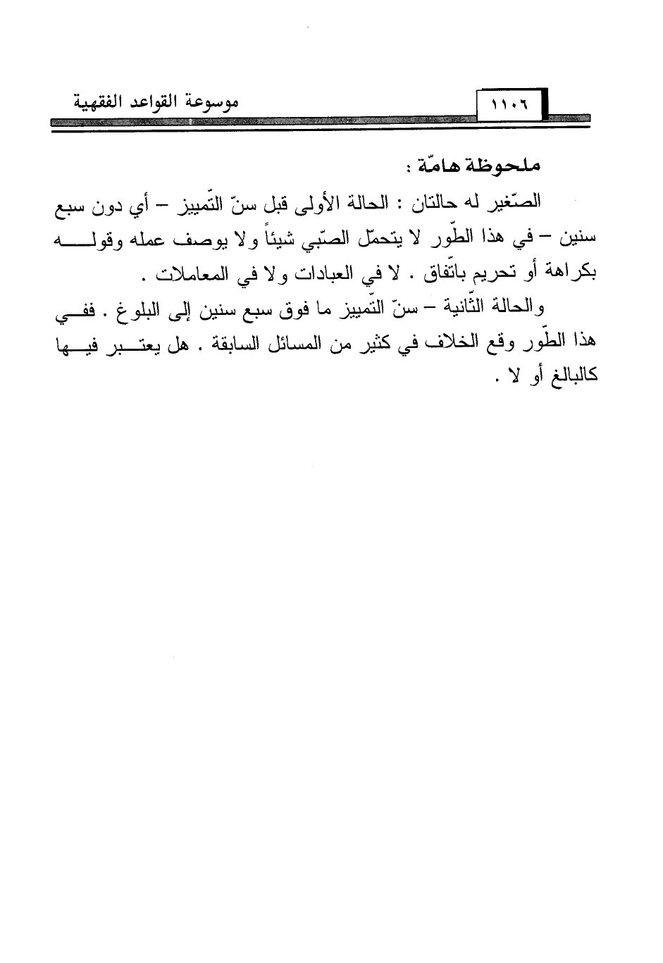 والحالة الثّانية - سنّ التّمييز ما فوق سبع سنين إلى البلوغ. ففي هذا الطّور وقع الخلاف في كثير من المسائل السابقة. هل يعتبر فيها كالبالغ أو لا.
