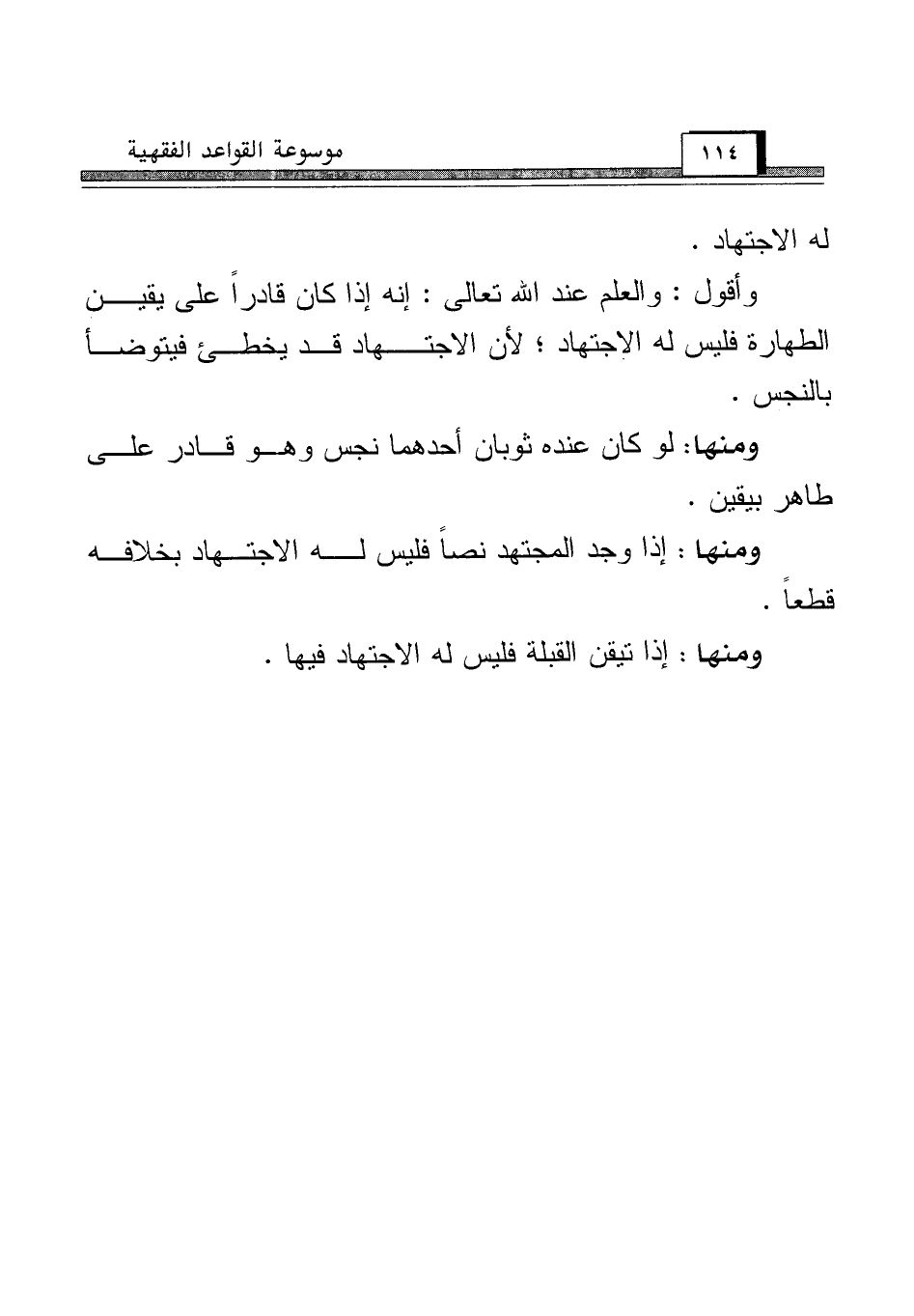وأقول: والعلم عند الله تعالى: إنه إذا كان قادراً على يقين الطهارة فليس له الاجتهاد؛ لأن الاجتهاد يخطئ فيتوضأ بالنجس.