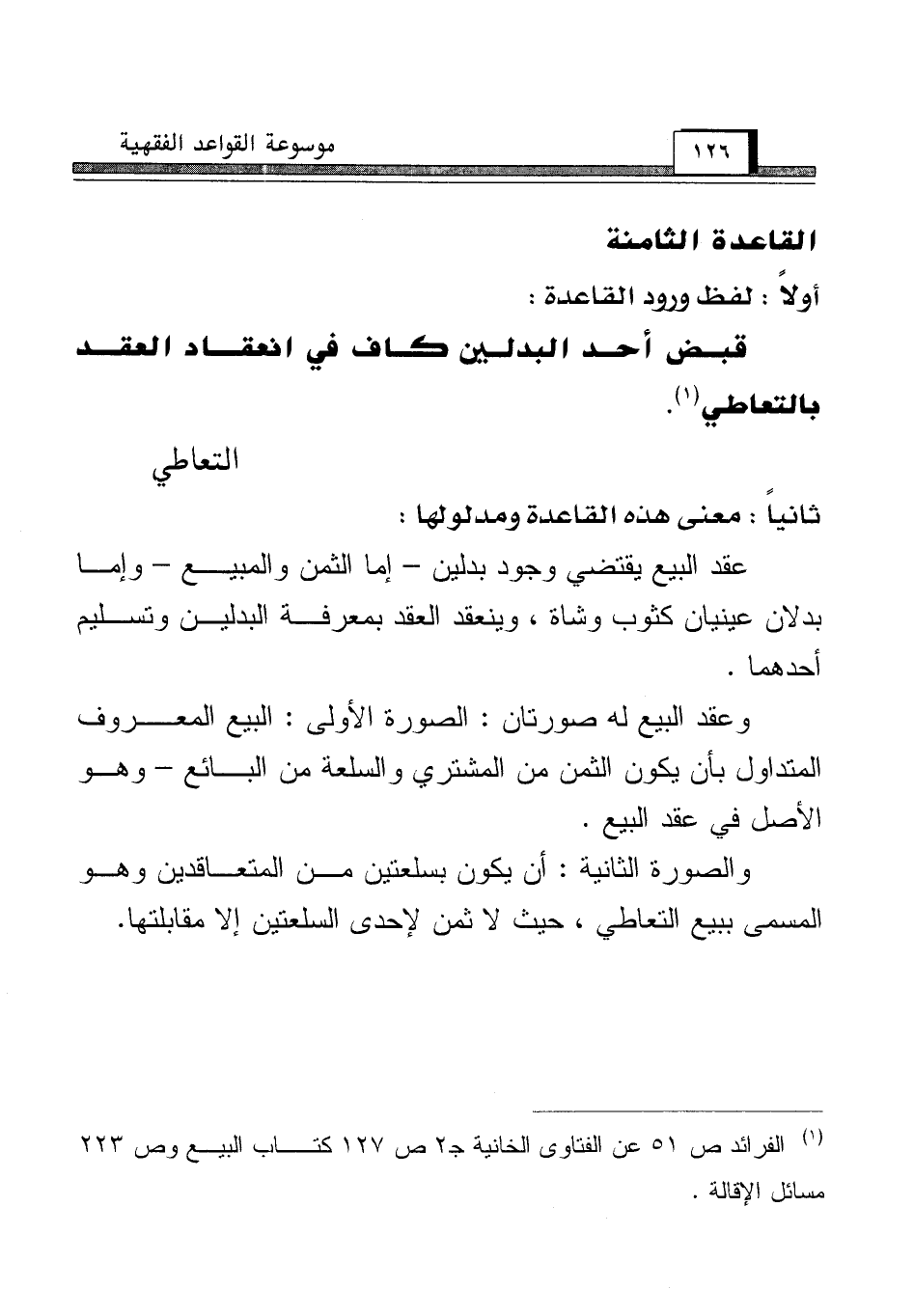 (¬1) الفرائد ص 51 عن الفتاوى الخانية جـ 2 ص 127 كتاب البيع وص 223 مسائل الإقالة.