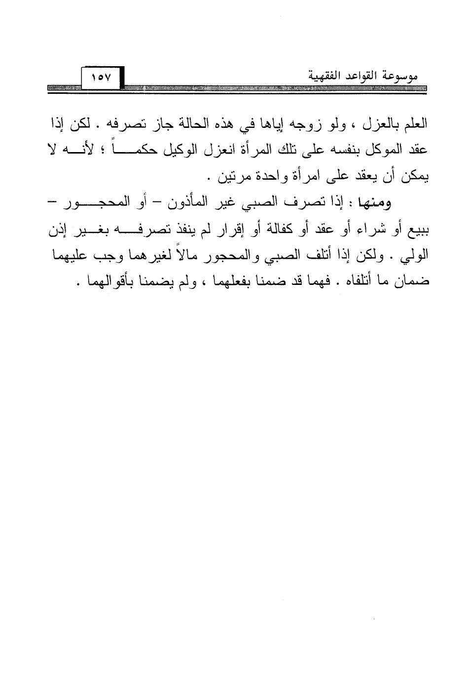 ومنها: إذا تصرف الصبي غير المأذون - أو المحجور - ببيع أو شراء أو عقد أو كفالة أو إقرار لم ينفذ تصرفه بغير إذن الولي. ولكن إذا أتلف الصبي والمحجور مالاً لغيرهما وجب عليهما ضمان ما أتلفاه. فهما قد ضمنا بفعلهما، ولم يضمنا بأقوالهما.