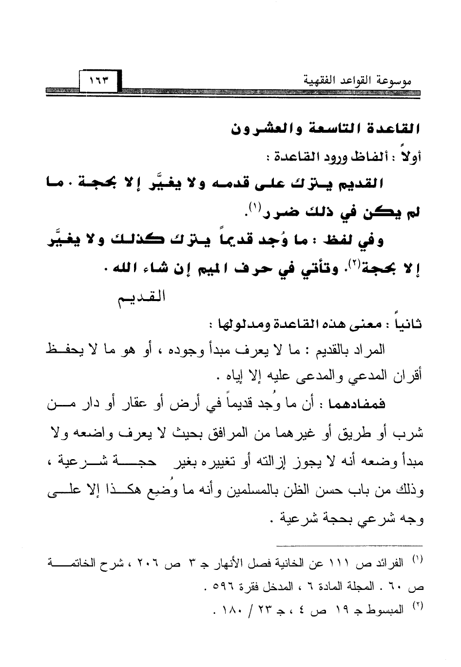 (¬1) الفرائد ص 111 على الخانية فصل الأنهار جـ 3 ص 206، شرح الخاتمة ص 60. المجلة المادة 6، المدخل فقرة 596.