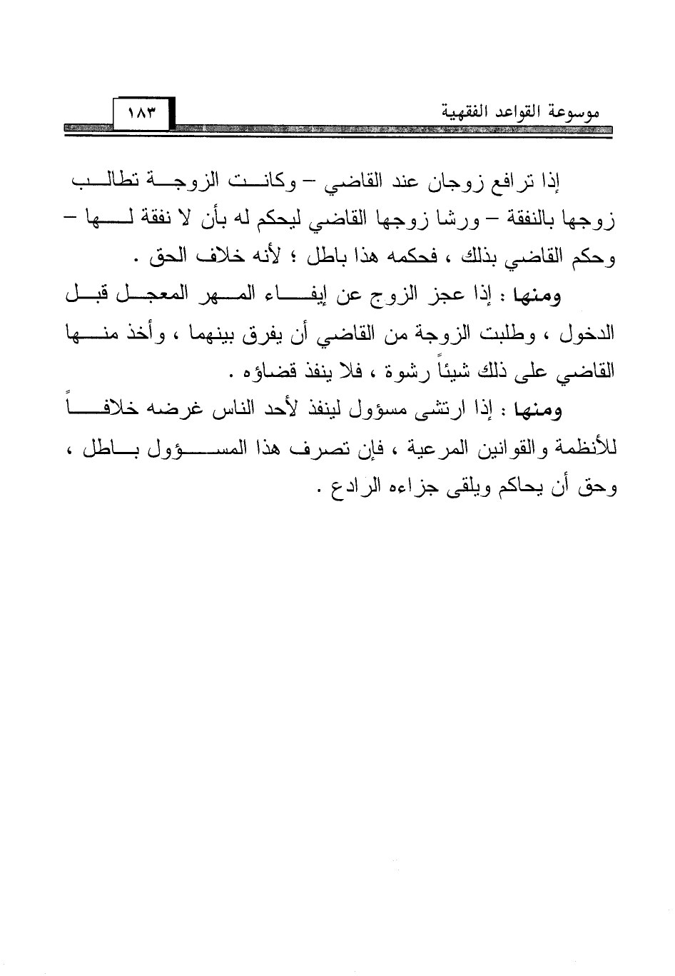 ومنها: إذا عجز الزوج عن إيفاء المهر المعجل قبل الدخول، وطلبت الزوجة من القاضي أن يفرق بينهما، وأخذ منها القاضي على ذلك شيئاً رشوة، فلا ينفذ قضاؤه.