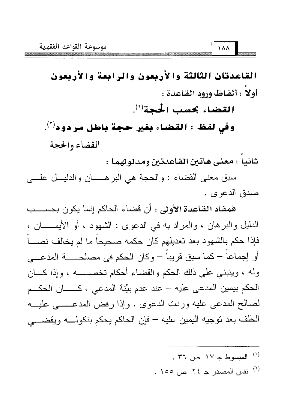 القاعدتان الثالثة والأربعون والرابعة والأربعون [القضاء والحجة]