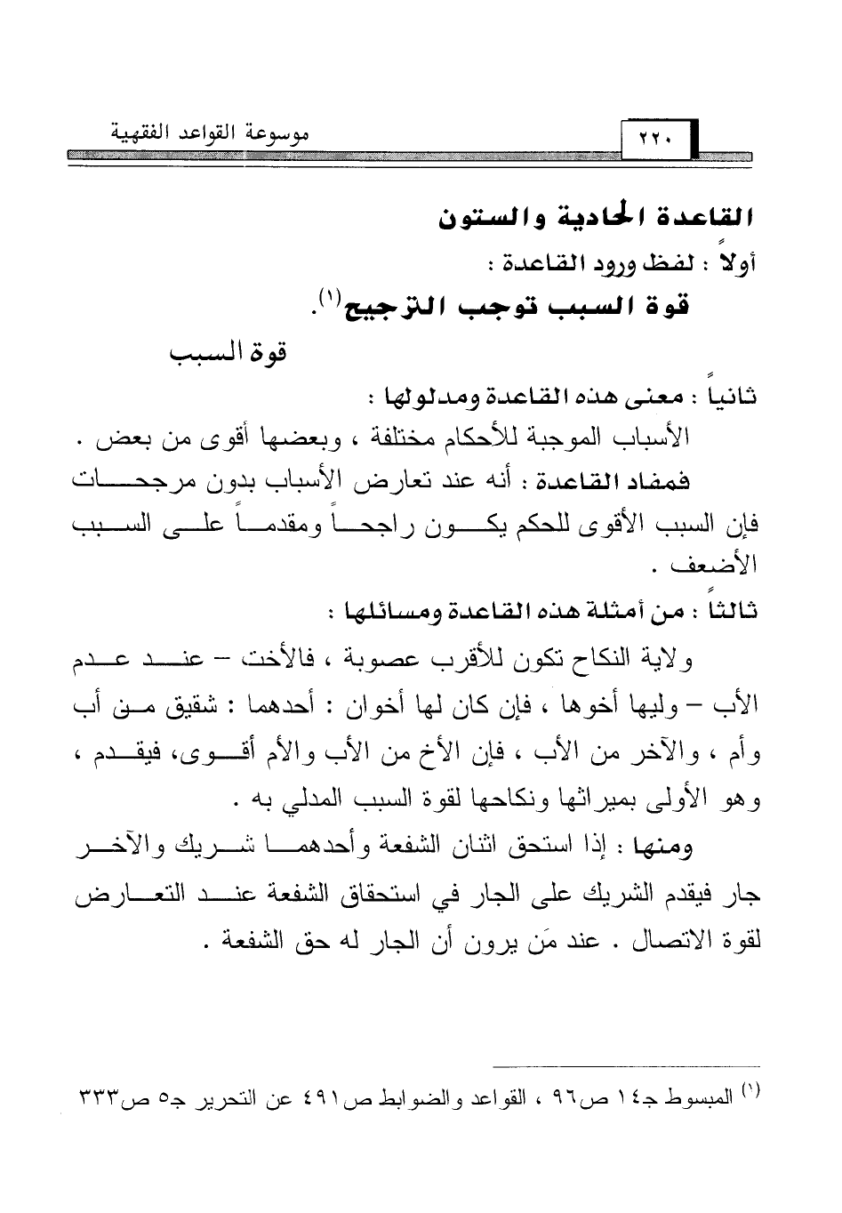 (¬1) المبسوط جـ 14 ص 96، القواعد والضوابط ص 491 عن التحرير جـ 5 ص 333