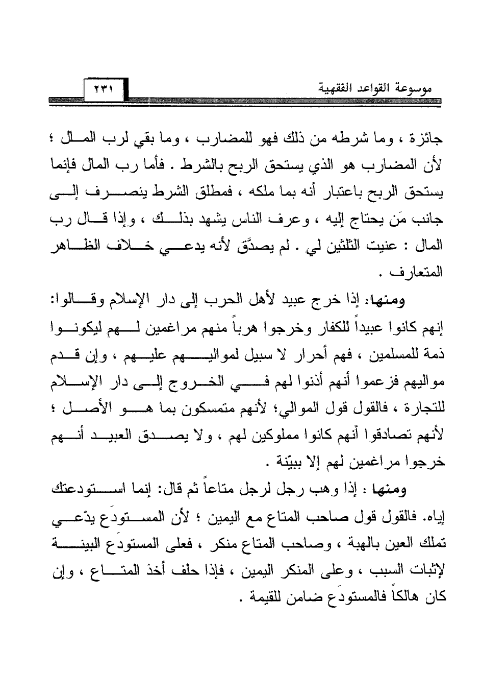 ومنها: إذا خرج عبيد لأهل الحرب إلى دار الإسلام وقالوا: إنهم كانوا عبيداً للكفار وخرجوا هرباً منهم مراغمين لهم ليكونوا ذمة للمسلمين، فهم أحرار لا سبيل لمواليهم عليهم، وإن قدم مواليهم فزعموا أنهم أذنوا لهم في الخروج إلى دار الإسلام للتجارة، فالقول قول الموالي؛ لأنهم متمسكون بما هو الأصل؛ لأنهم تصادقوا أنهم كانوا مملوكين لهم، ولا يصدق العبيد أنهم خرجوا مراغمين لهم إلا ببيّنة.
