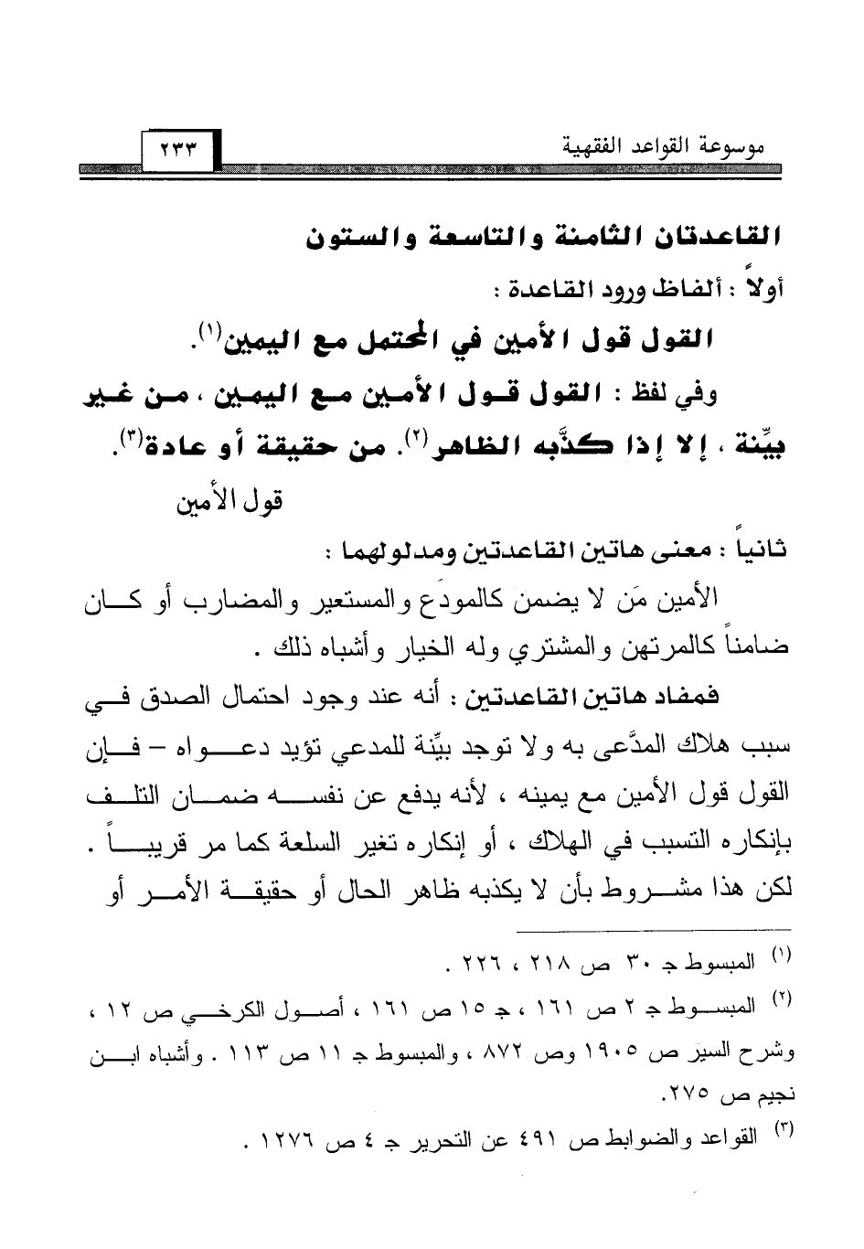 القاعدتان الثامنة والتاسعة والستون [قول الأمين]
