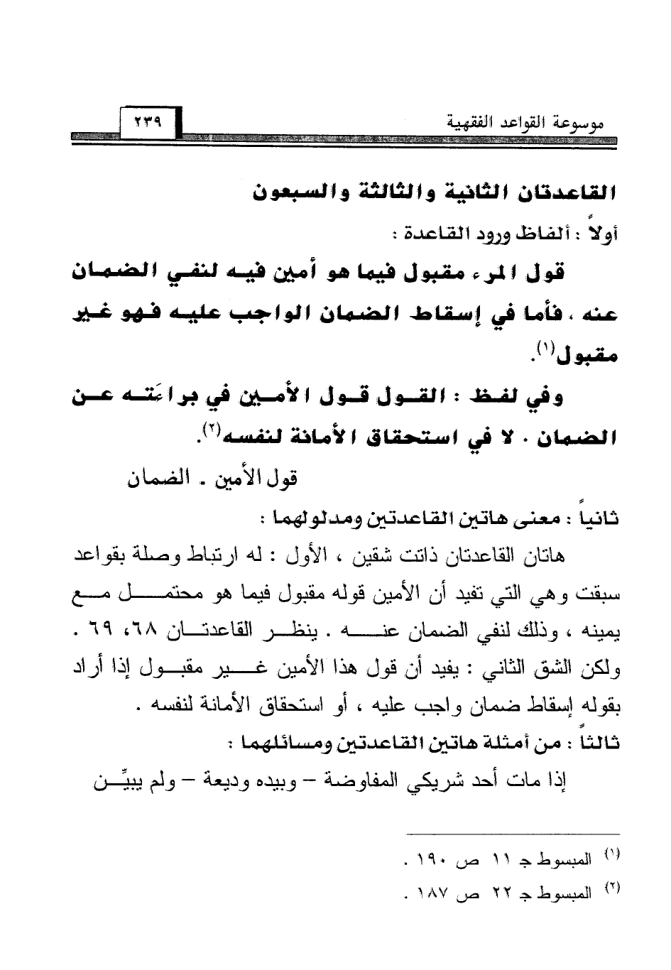 القاعدتان الثانية والثالثة والسبعون [قول الأمين - الضمان]