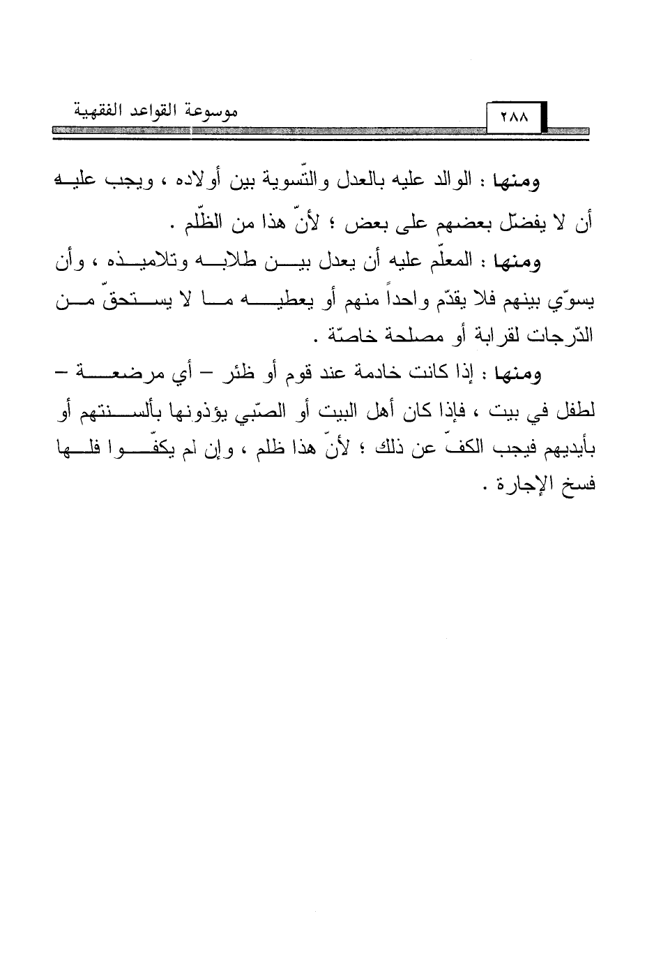 ومنها: الوالد عليه بالعدل والتّسوية بين أولاده، ويجب عليه أن لا يفضّل بعضهم على بعض؛ لأنّ هذا من الظّلم.