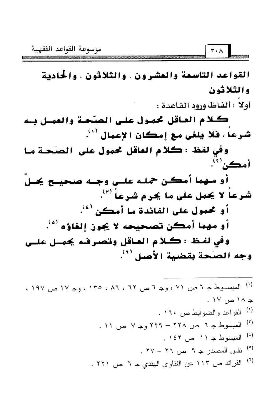 كلام العاقل محمول على الصّحة والعمل به شرعاً، فلا يلغى مع إمكان الإعمال (¬1).