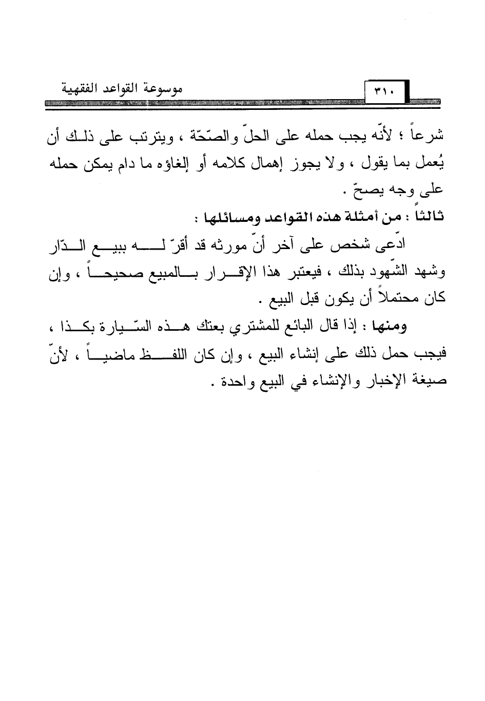 ثالثاً: من أمثلة هذه القواعد ومسائلها:
