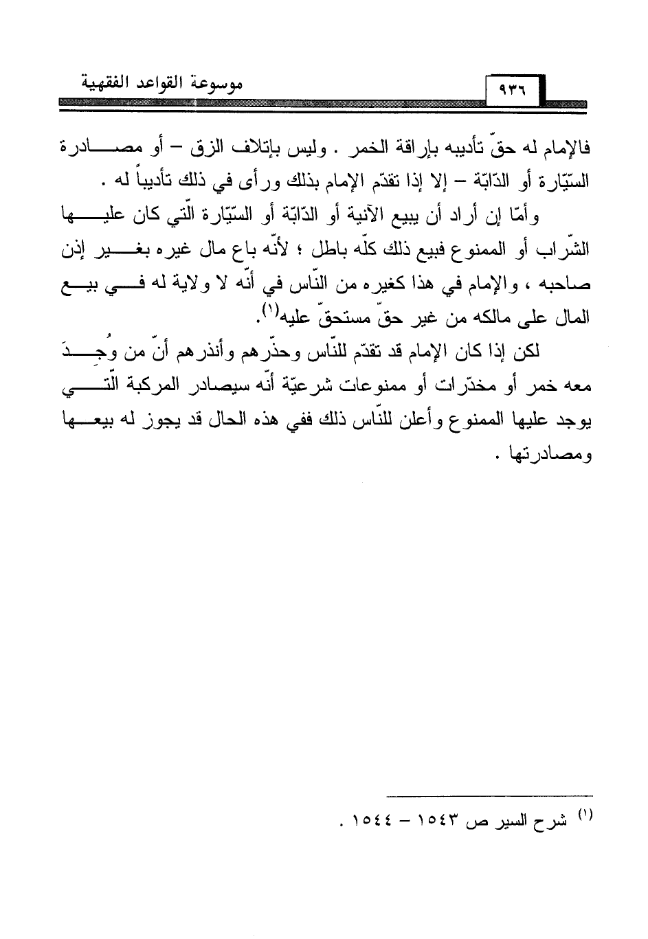 وأمّا إن أراد أن يبيع الآنية أو الدّابّة أو السّيّارة الّتي كان عليها الشّراب أو الممنوع فبيع ذلك كلّه باطل؛ لأنّه باع مال غيره بغير إذن صاحبه، والإمام في هذا كغيره من النّاس في أنّه لا ولاية له في بيع المال على مالكه من غير حقّ مستحقّ عليه (¬1).