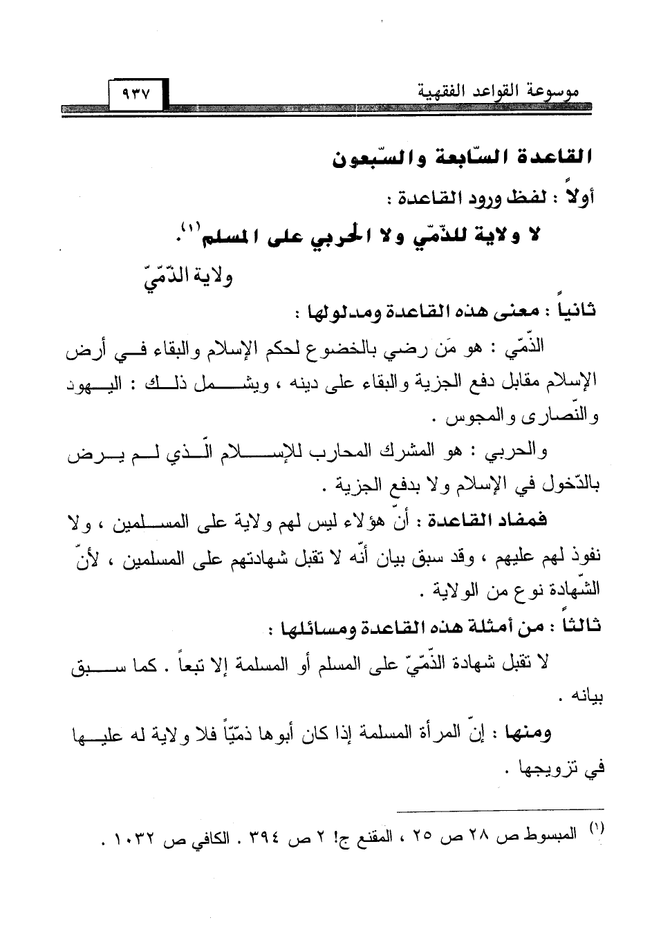 القاعدة السّابعة والسّبعون [ولاية الذّمّيّ]